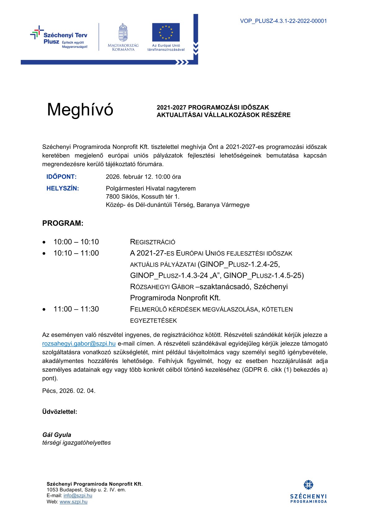 Tájékoztató fórum európai uniós pályázatok fejlesztési lehetőségeinek bemutatásáról - 2026. február 12.