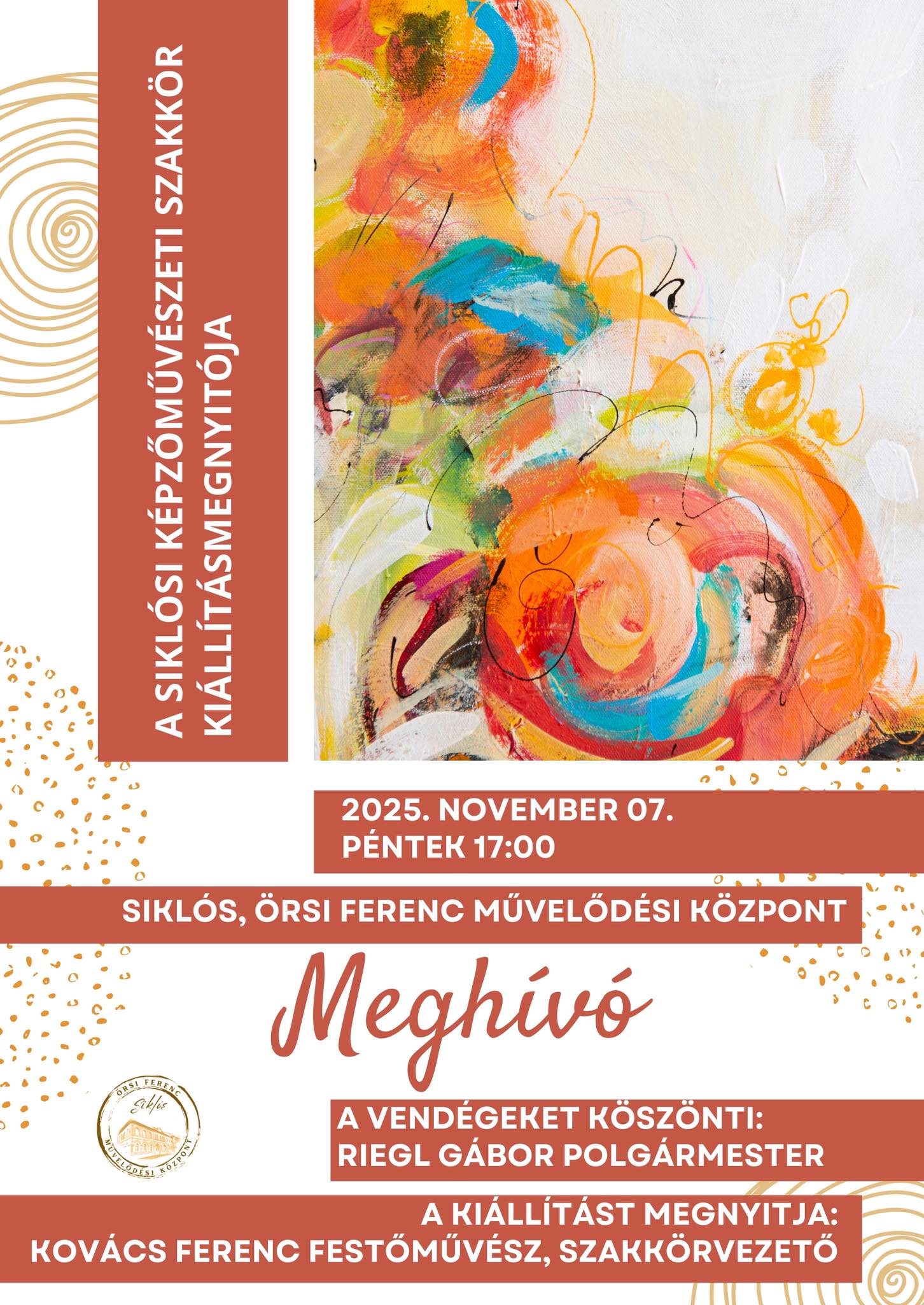 Szeretettel meghívjuk Önt és kedves családját a Siklósi Képzőművészeti Szakkör új kiállításának ünnepélyes megnyitójára.